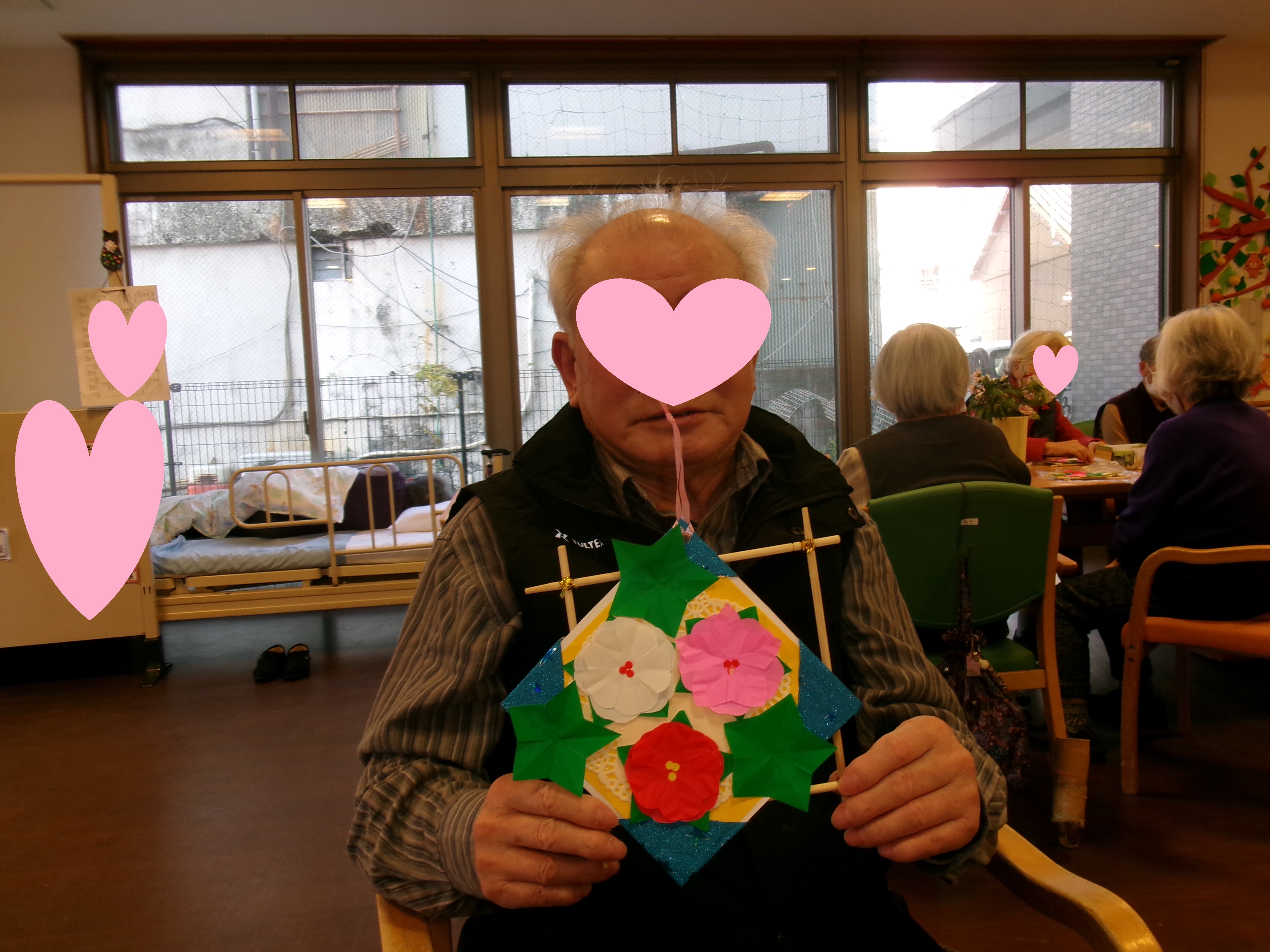 デイサービスセンターでポインセチアの飾りを作りました。